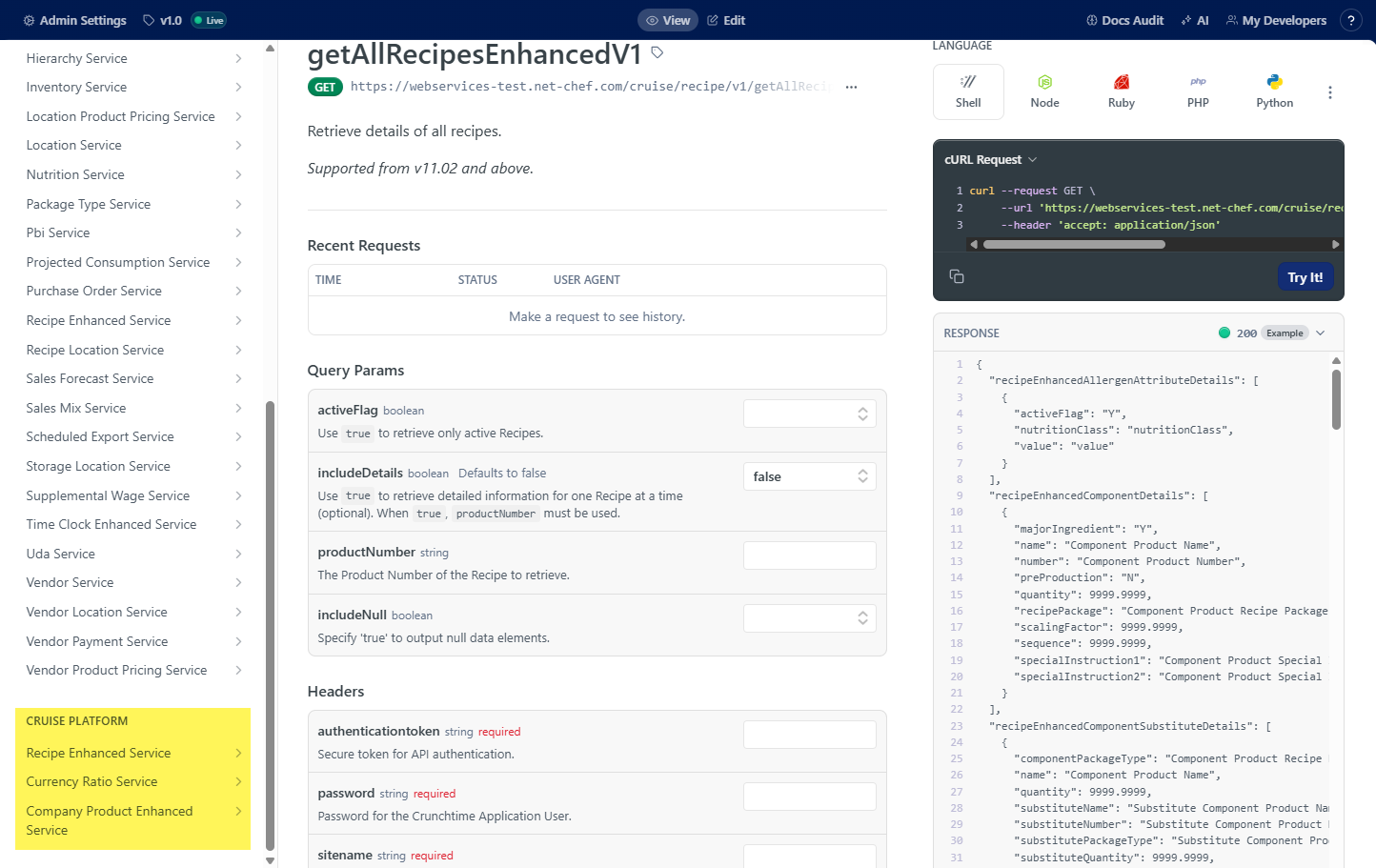 Note: These APIs can only be used by Crunchtime Hosted Cruise Customers.